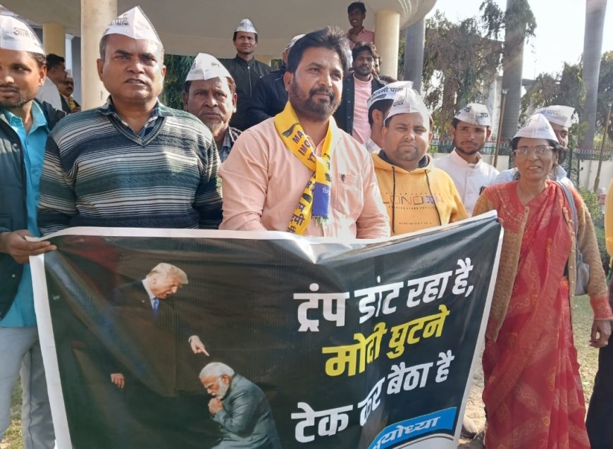 अयोध्या: मोदी ट्रंप ट्रेड डील के विरोध में आम आदमी पार्टी ने किया जबरदस्त विरोध प्रदर्शन