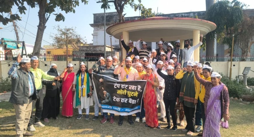 अयोध्या, अचल वार्ता। प्रधानमंत्री नरेंद्र मोदी और अमेरिका के राष्ट्रपति डोनाल्ड ट्रंप के बीच हुए कथित ट्रेड डील को देश की संप्रभुता, किसानों, छोटे व्यापारियों और आम नागरिकों के हितों पर सीधा हमला बताते हुए आम आदमी पार्टी के यू पी प्रभारी एवं राज्यसभा सांसद संजय सिंह के आवाह्न पर आम आदमी पार्टी अयोध्या के पदाधिकारी एवम कार्यकर्ताओं ने 14 फरवरी को जनपद के गांधी पार्क सिविल लाइंस में जिलाध्यक्ष अनिल प्रजापति के नेतृत्व में एकत्र होकर विरोध प्रदर्शन किया एवम राष्ट्रपति के नाम संबोधित ज्ञापन जिला प्रशासन को सौंपा