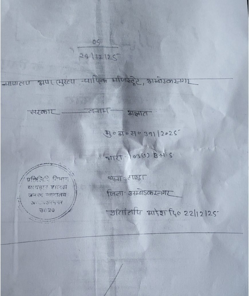 मुकदमा संख्या 391/2025, धारा 103(1) भारतीय न्याय संहिता, थाना टाण्डा में अभियुक्त राहुल पुत्र हीरालाल के विरुद्ध विवेचक द्वारा दिनांक 07 दिसंबर 2025 को अपर मुख्य न्यायिक मजिस्ट्रेट, अम्बेडकर नगर के समक्ष रिमाण्ड प्रार्थना पत्र प्रस्तुत किया गया। विवेचक का दावा था कि अभियुक्त ने अपनी माता सीता देवी की हत्या पैसे की जरूरत के चलते की और उसके बयान के आधार पर रिमाण्ड की मांग की गई।