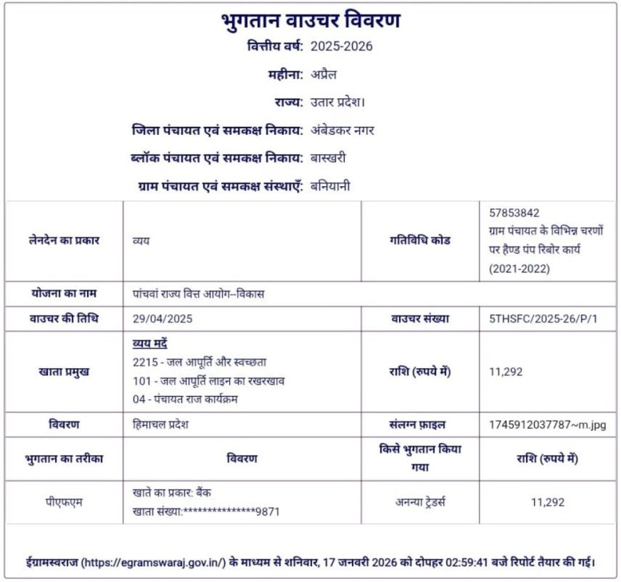 अंबेडकर नगर के बसखारी ब्लॉक की ग्राम पंचायत बनियानी में आधार कार्ड को बिल-वाउचर बनाकर सरकारी धन निकासी का मामला सामने आया, ग्रामीणों ने जांच की मांग की।