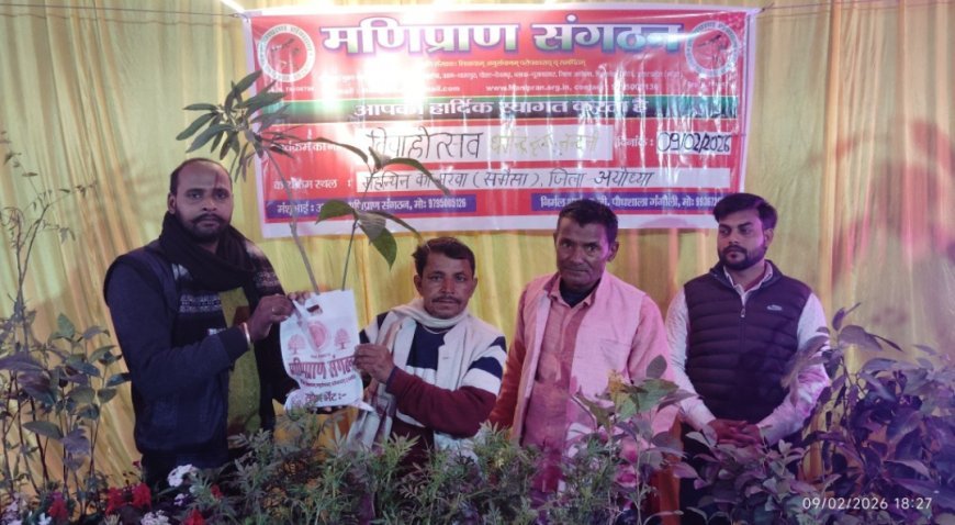 अयोध्या में मणिप्राण संगठन की अनोखी पहल, विवाहोत्सव में स्टाल लगाकर पौध वितरण के माध्यम से पर्यावरण संरक्षण का संदेश दिया गया। अतिथियों ने पहल की सराहना की।