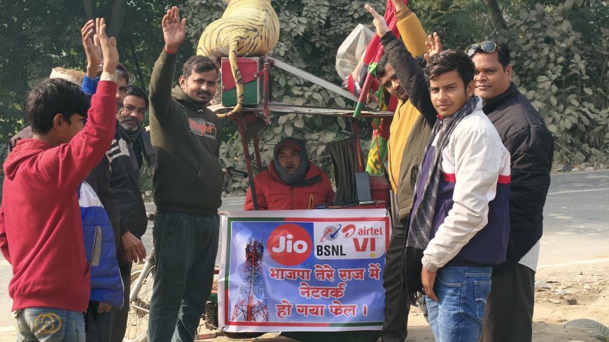 मोबाइल नेटवर्क की समस्या को लेकर बीकापुर क्षेत्र में ग्रामीणों के साथ सपा का जोरदार प्रदर्शन। टेलीकॉम कंपनियों पर नेटवर्क गायब रहने और महंगे रिचार्ज का आरोप लगाया गया।