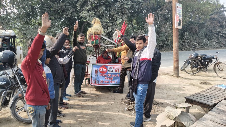 बीकापुर क्षेत्र में टेलीकॉम कंपनियों के खिलाफ उतरे ग्रामीण, नेटवर्क और महंगे रिचार्ज का किया विरोध