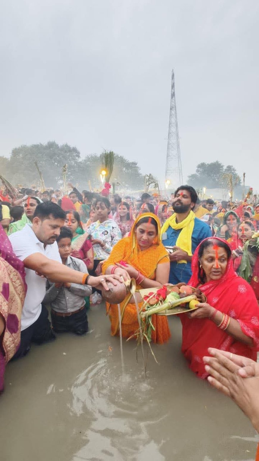 उगते हुए सूरज को अर्घ्य देकर व्रतियों ने किया छठ व्रत का समापन।मौसम खराब होने के कारण भगवान सूर्य के नहीं हुए दर्शन।सूर्योदय के समय को केंद्र में रख कर महिलाओं ने भगवान सूर्य को दिया अर्घ्य।सरयू जल में खड़ी होकर व्रती महिलाओ ने की पूजा अर्चना।उगते हुए सूर्य को दिया अर्घ्य, परिवार की सुख सम्रद्धि की कामना की।हजारों की संख्या में सरयू नदी तट पर लोगो की दिखी आस्था।सुरक्षा की दृष्टि से बड़ी संख्या में पुलिस बल, आरएएफ फोर्स घाटों पर की की गई तैनाती।4 दिनों का चलने वाली छठ पूजा का आज हुआ समापन।
