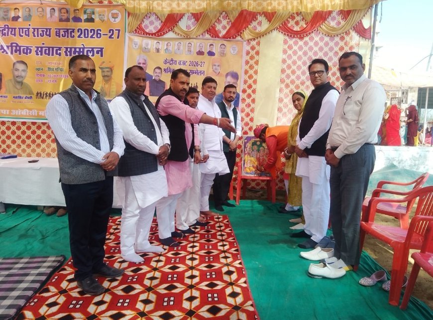 अलवर के तिजारा क्षेत्र में ओबीसी मोर्चा द्वारा केंद्रीय व राज्य बजट 2026 श्रमिक संवाद सम्मेलन आयोजित, प्रभारी निर्मल प्रकाश सूरा बोले— बजट किसान, श्रमिक, महिला व युवा हितैषी।