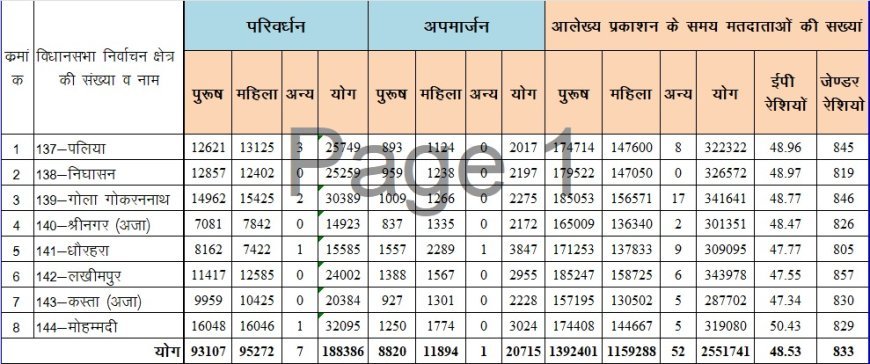 मतदाता सूची का अंतिम प्रकाशन: खीरी में 25.51 लाख वोटर, एक हफ्ते तक निरीक्षण का मौका